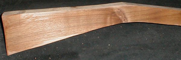 | English Walnut # 137 OAL; 36", Thickness: 2", Butt height: 5 1/2", Barrel channel length is only about 18" $ 30.00 SOLD |